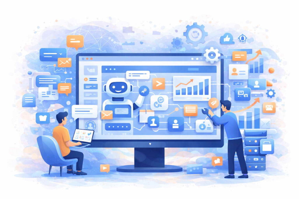 Далее настраивается решение: подключаются боты, автоматические ответы, интеграции с CRM и логика обработки заявок. Всё работает как единая система, без хаоса и постоянного участия сотрудников.